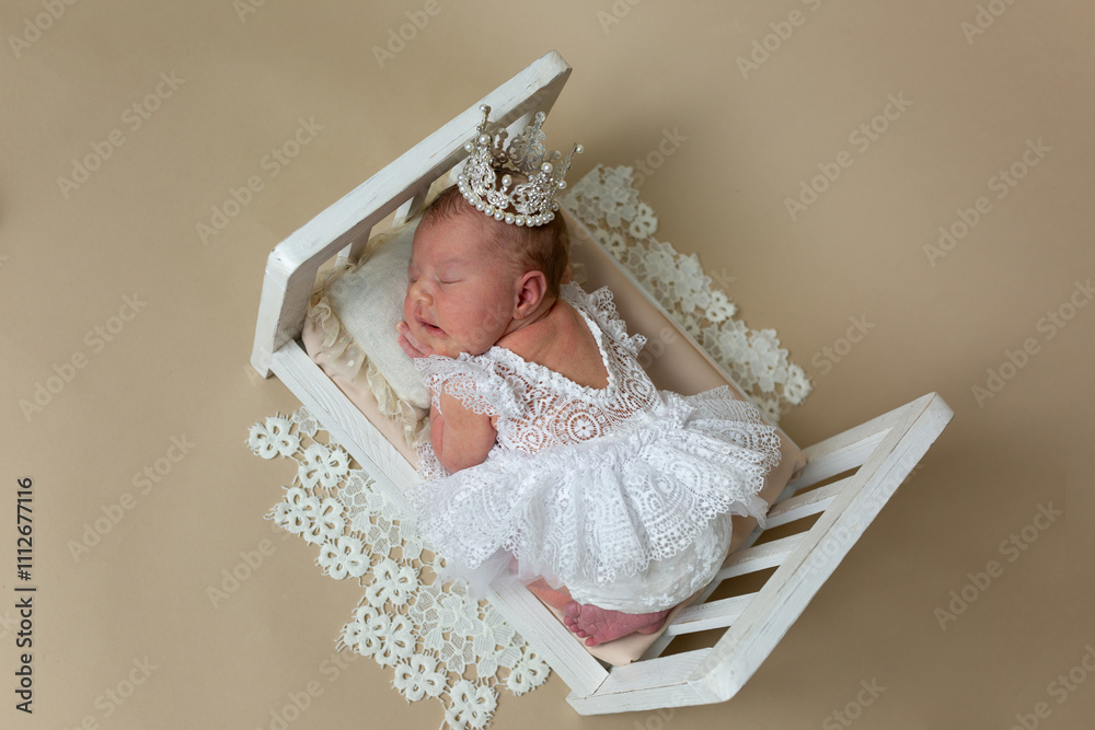newborn girl in a sheep's hat. first photo session of a newborn baby