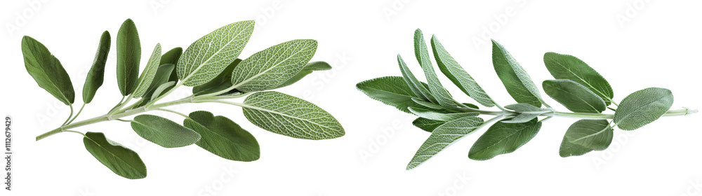 Fresh Green Sage Leaves Isolated on White Background for Culinary Use and Decoration