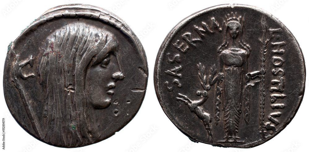 República Romana L. Hostilius Saserna AR Denário. Roma, 48 a.C.