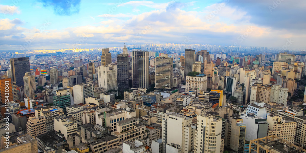 Panoramic view of downtown Sao Paulo, Brazil in twilight time