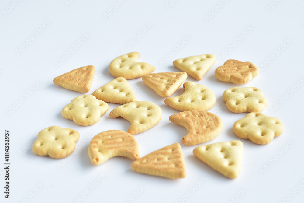 Small dry biscuits lie on a white background.