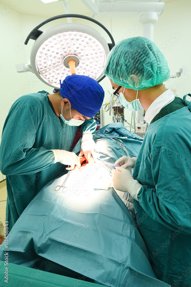 two veterinarian surgeons in operating room