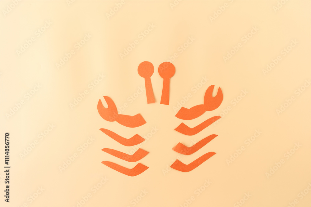 part of creative project , crabs legs and claws are crafted from orange paper cutouts. step by step tutorial, top view,