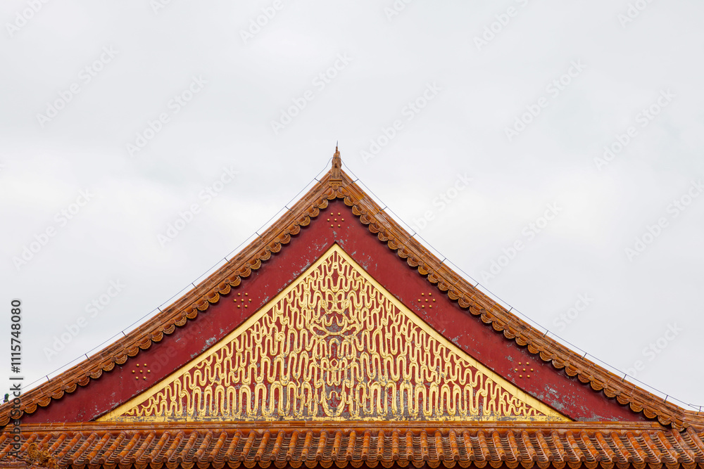 Yellow Chinese glazed roof tile on Tibetan architecture in Summer Palace, Beijing