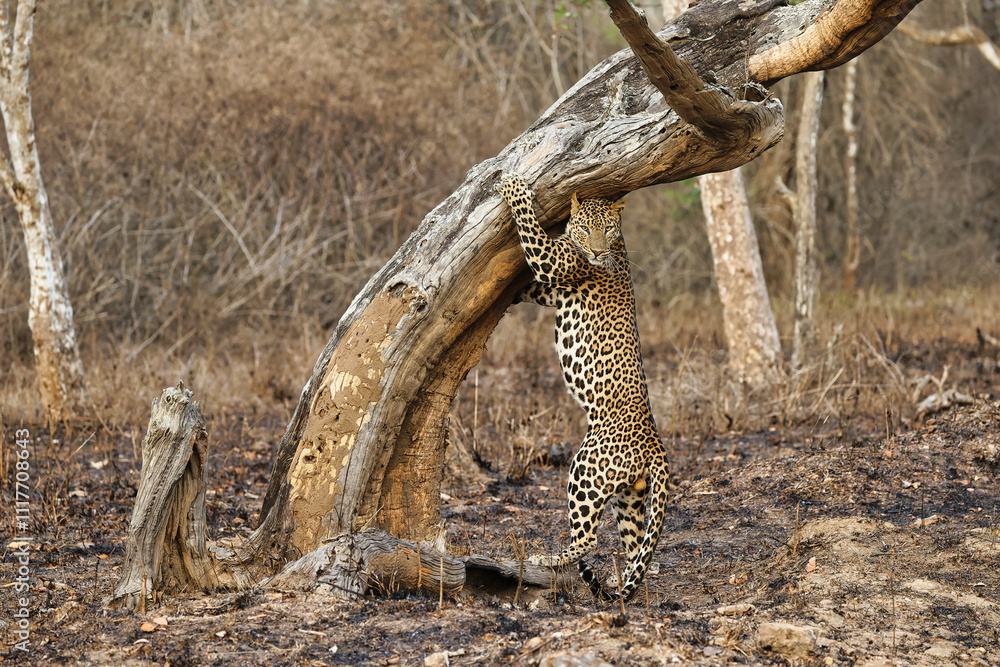 Leopard at Bandipur National Park or Tiger Reserve . One of the boldest & beautiful Leopard. This leopard gave sighting close to 20 mintues to photographers. The way it was hugging tree was superb