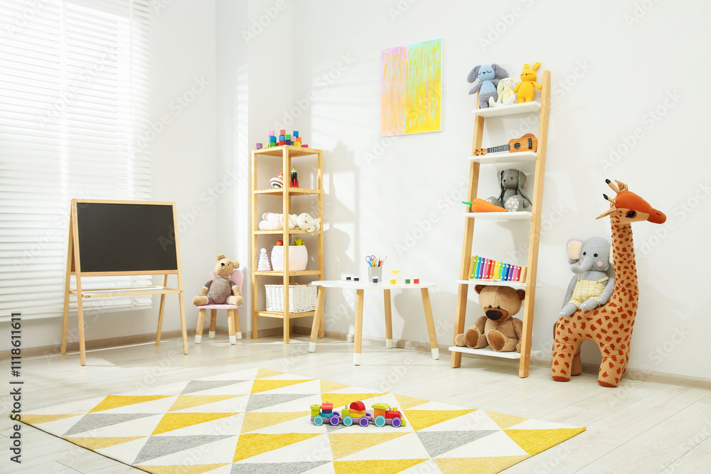 Beautiful child's room interior with toys and stylish furniture
