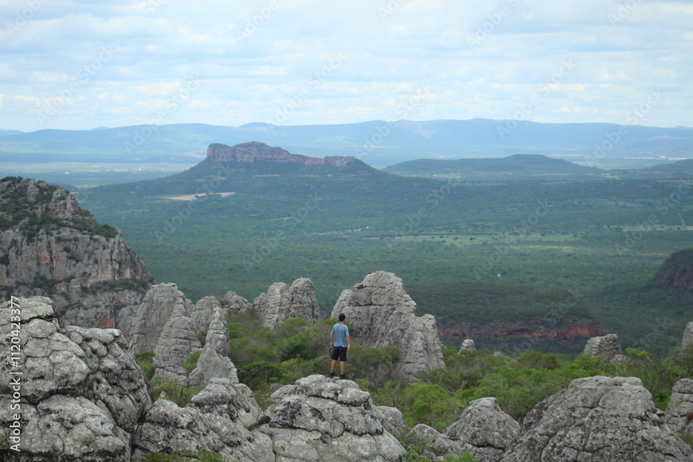 homem na trilha do santuário no vale do catimbau, pernambuco