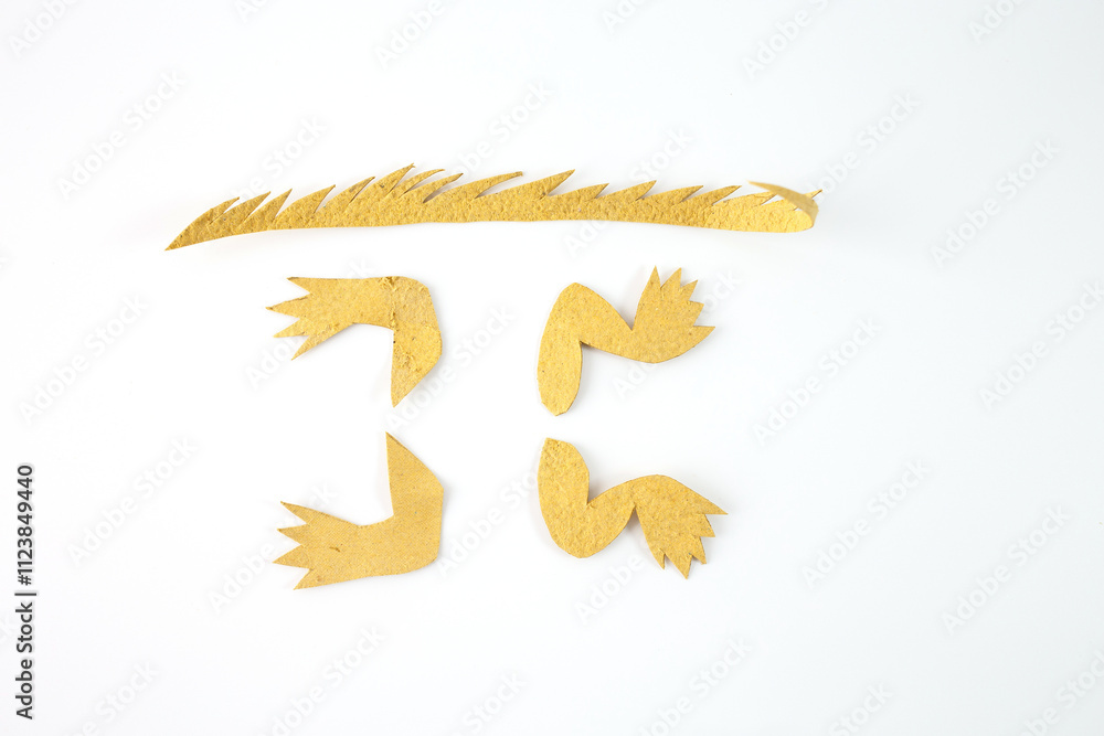 pieces of yellow paper cut into specific shapes. part of a craft project. lesson for kids