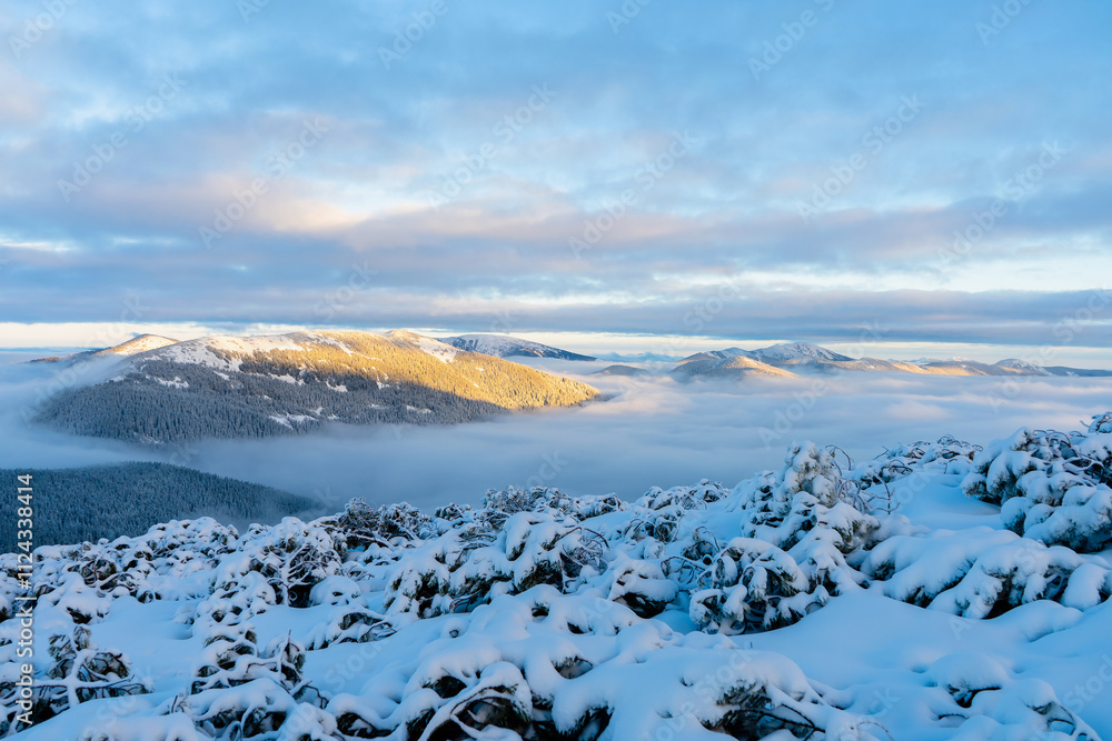 Mountain winter landscape screen desktop wallpaper, book notepad cover, background, Carpathian mountains, Ukraine