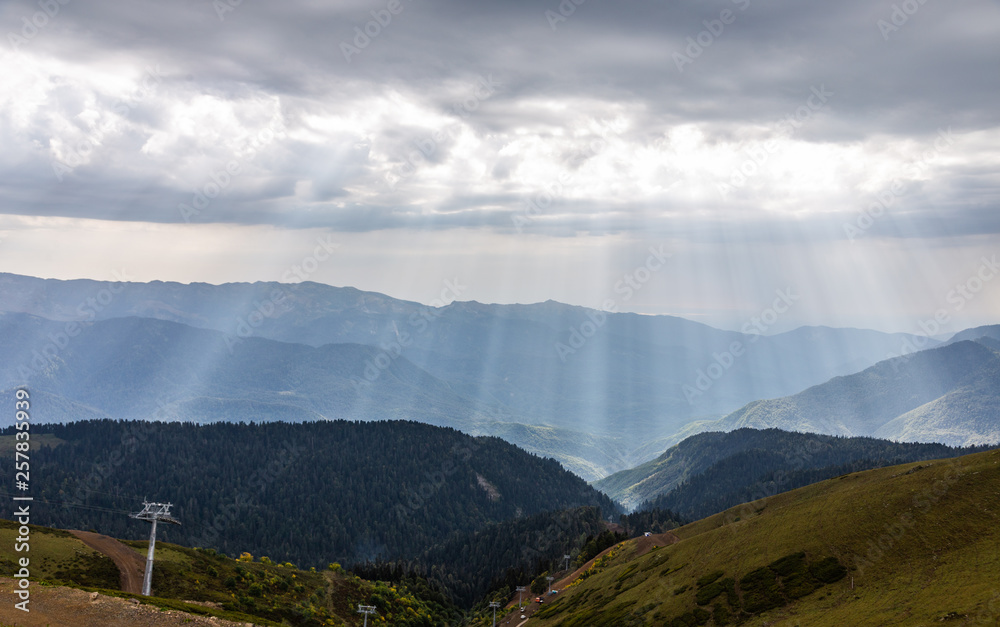 Flag of Guatemala, free in the wind with blue sky, coat of arms, Central America. September 15 independent.