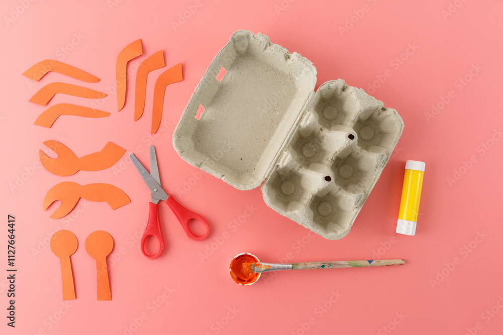 materials for craft, how to makes a crab from carton egg box, step by step tutorial