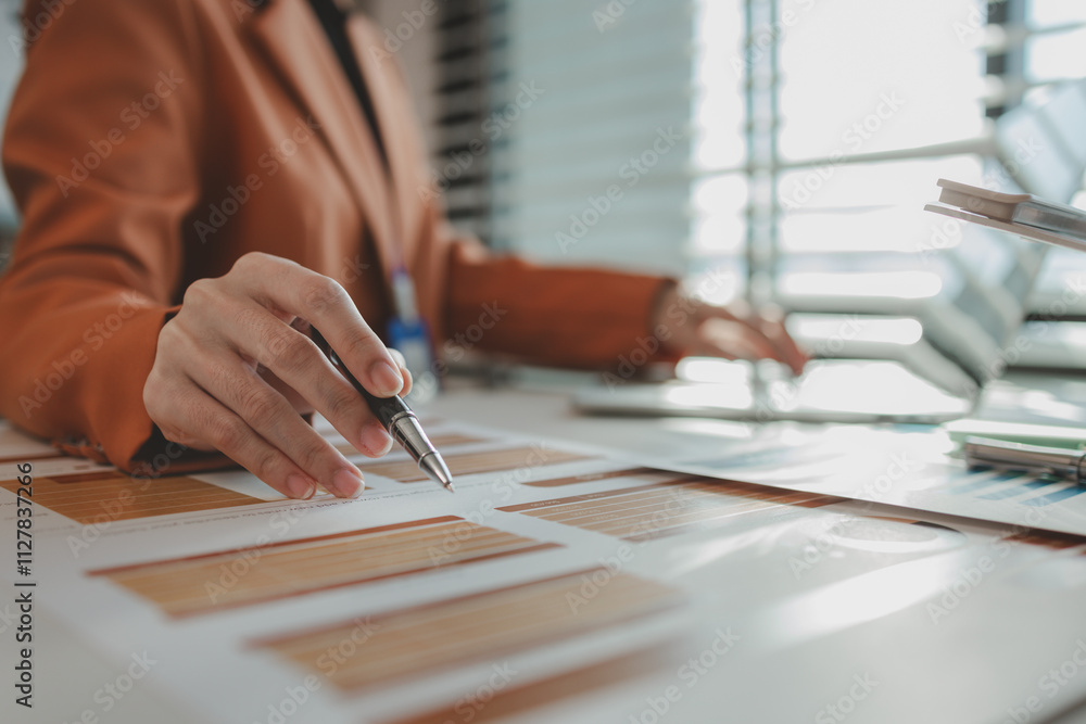 employees sit in an office with a pile of documents that need to be completed before work ends, entrepreneurs are planning their work to prepare for presentation to investors