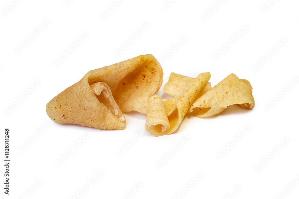 Pork skin cut pieces, also called sorici in Romania, winter season delicacy, isolated on white background