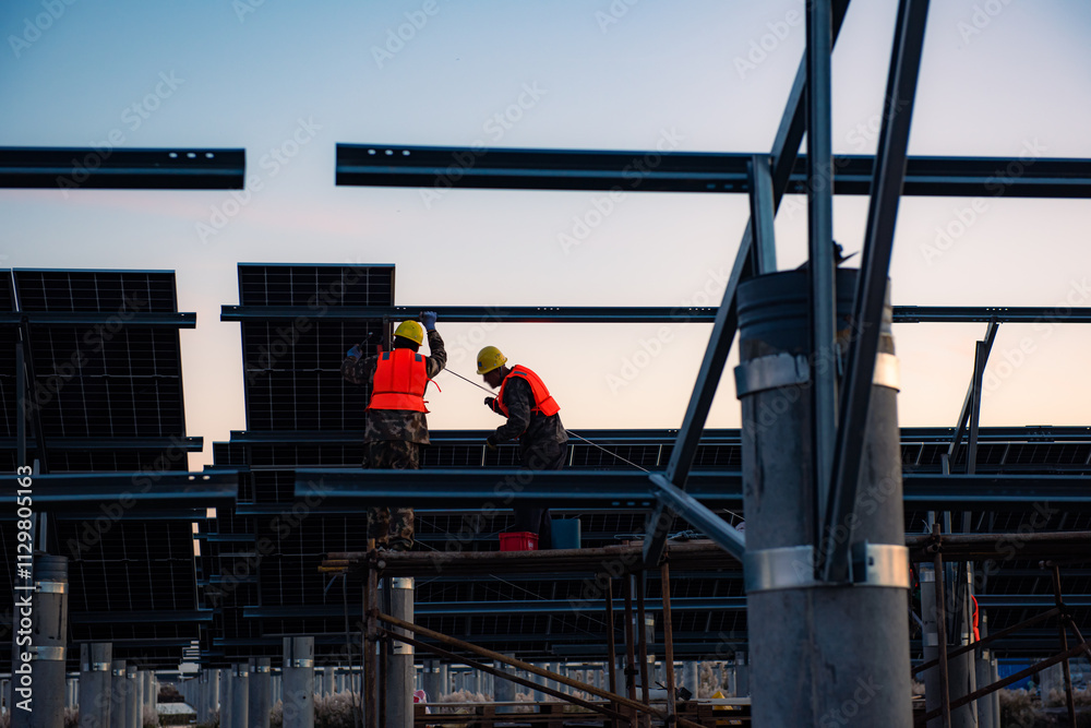 Solar power plants. Sustainable renewable energy and modern photovoltaic technology are used for environmentally friendly electricity production. The concept of solar power generation.