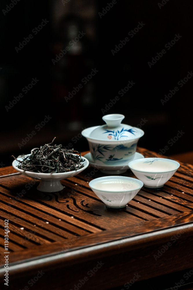 A traditional Chinese tea ceremony setup beautifully showcasing exquisite teaware and accessories