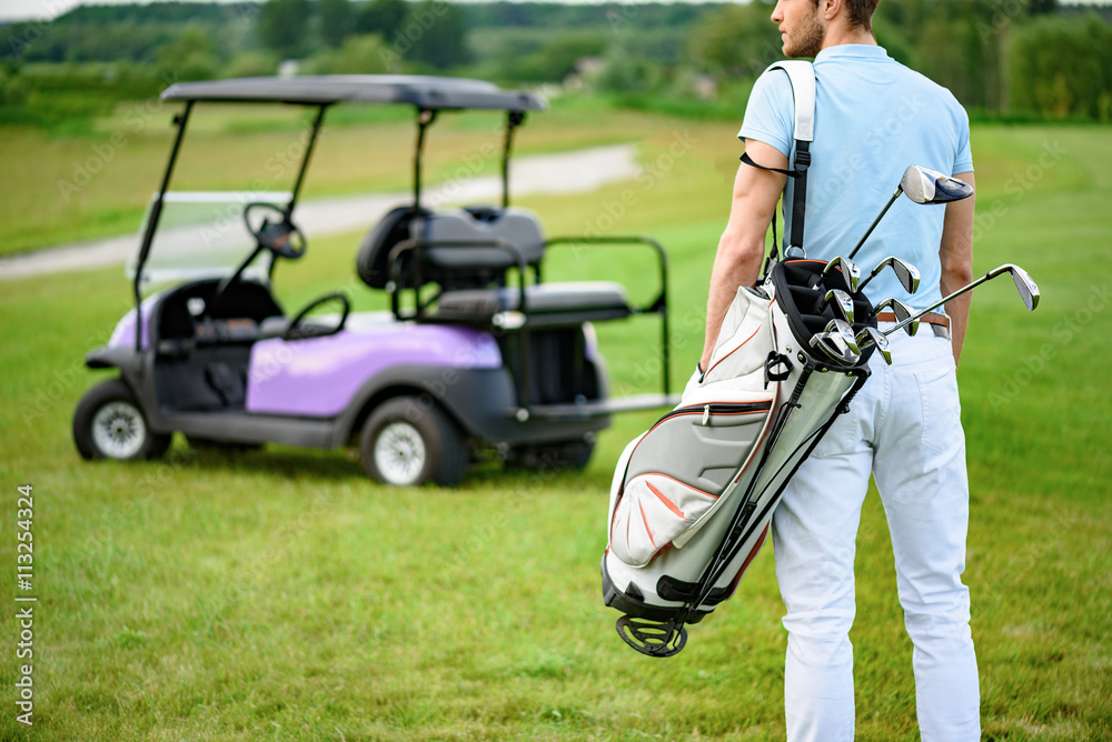 Golfer walking with golf bags