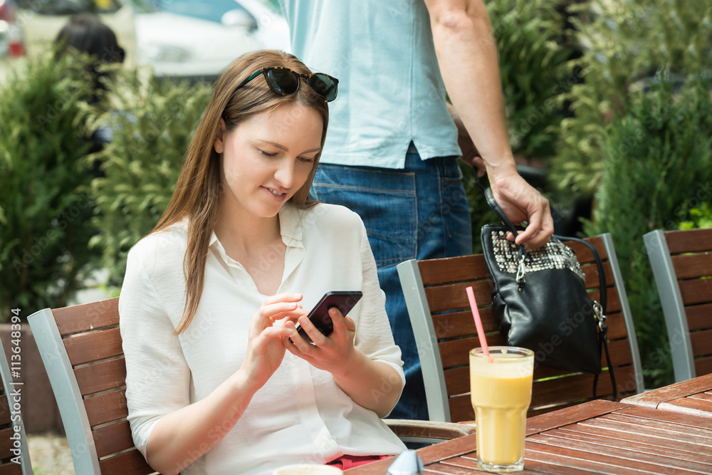 Thief Stealing Purse Of A Woman