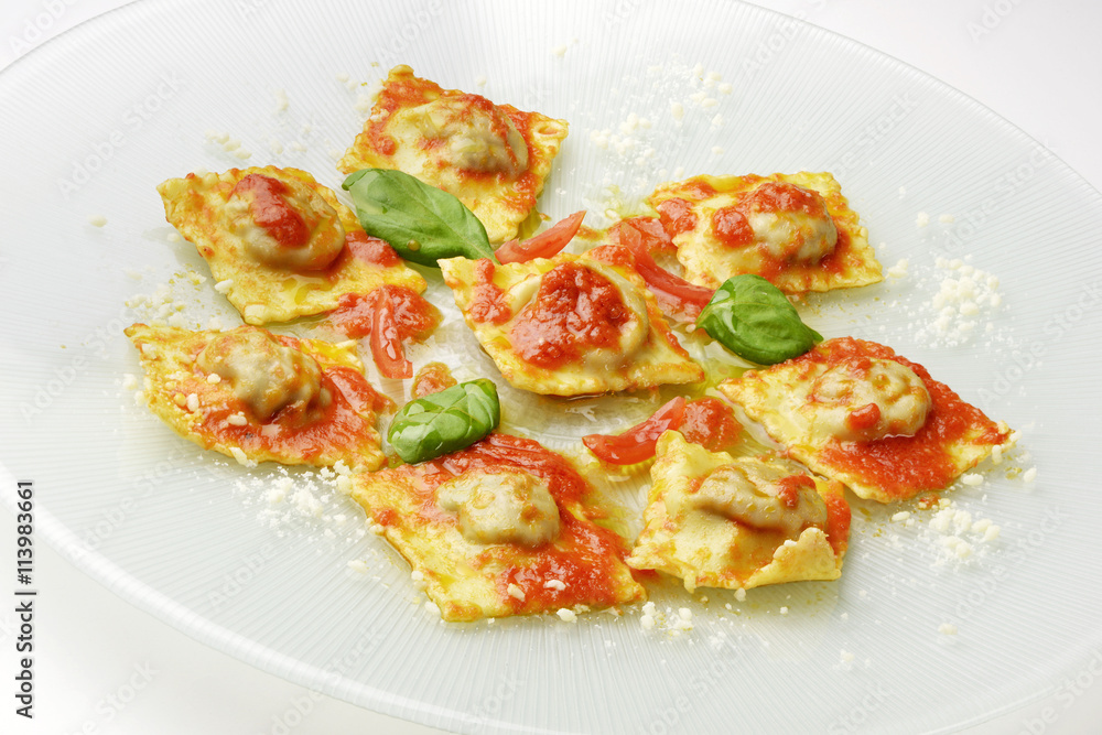 Pasta dish Ravioli stuffed with eggplant parmigiana