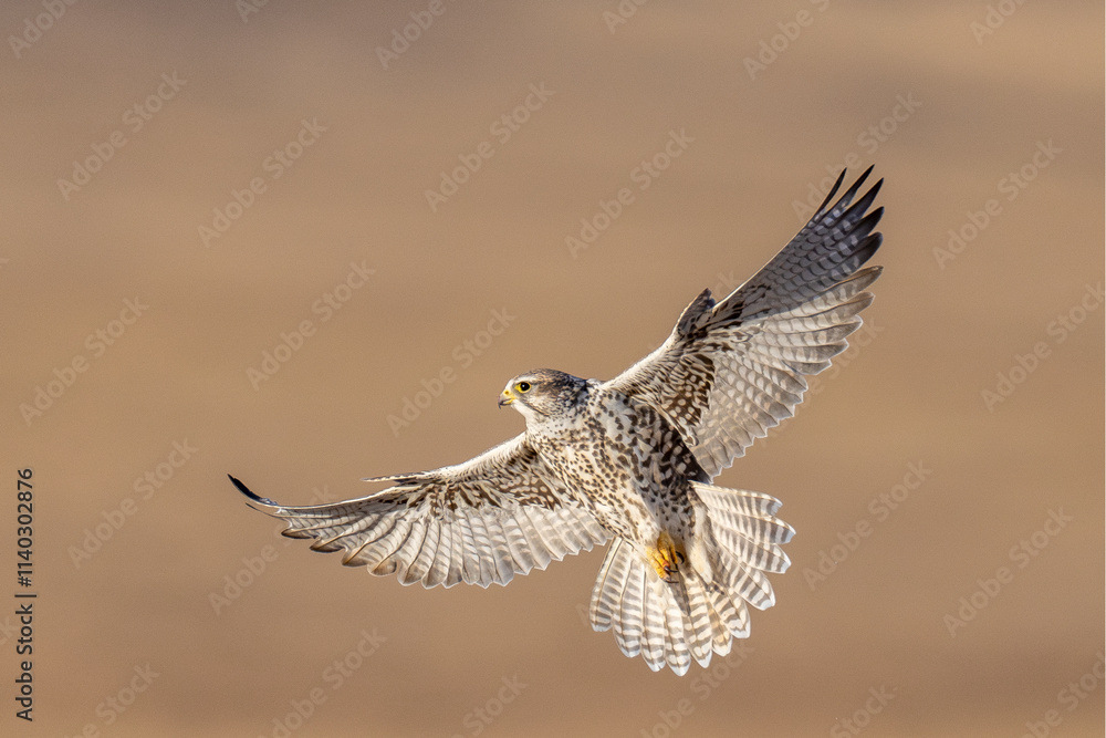 Saker falcon fly over Margaz Mountains landscape