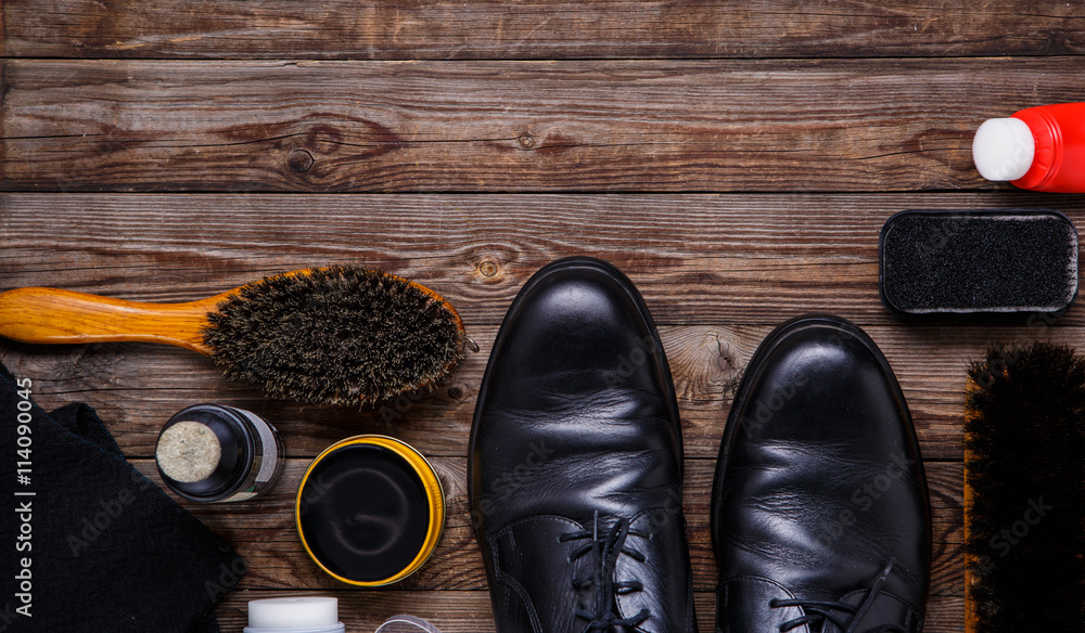 Shoe wax, brush and boot