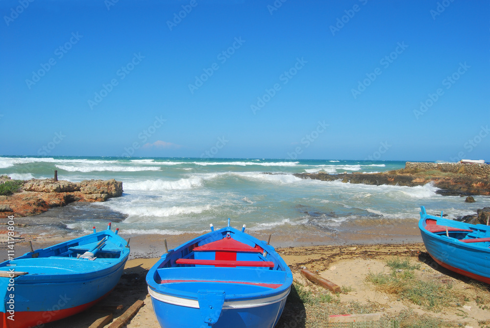 Boats ashore on the coast of Apulia of Torre Canne - Puglia - It