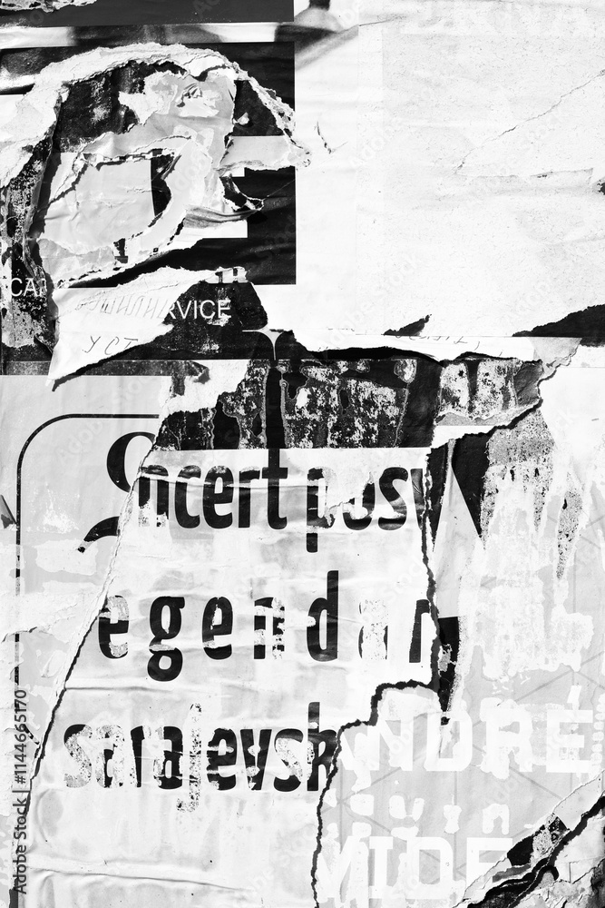 Old ripped torn blank black and white posters textures backgrounds grunge creased crumpled paper vintage collage placards empty space text