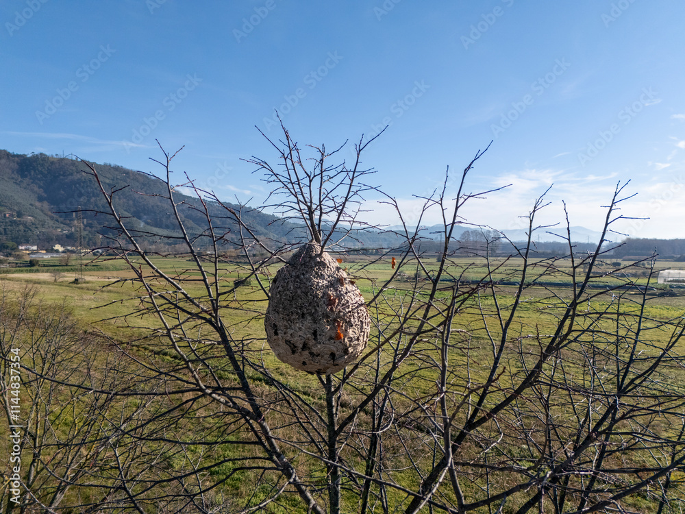 Velutina wasp nest, destructive to honey-producing bees