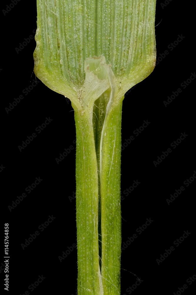 Broom Brome (Bromus scoparius). Ligule and Leaf Sheath Closeup