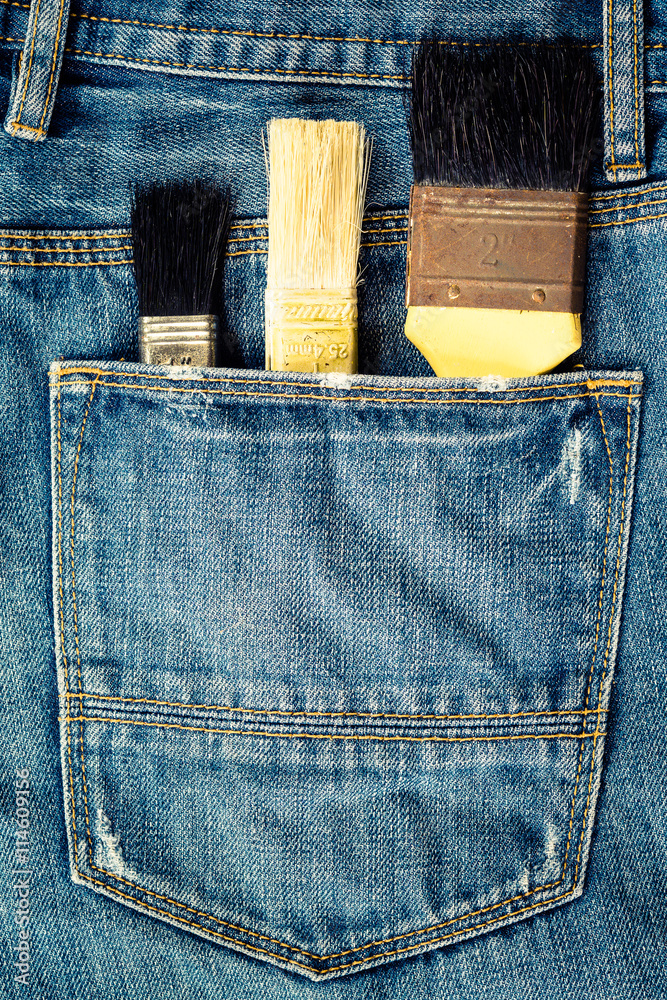 paint brushes in jeans pocket