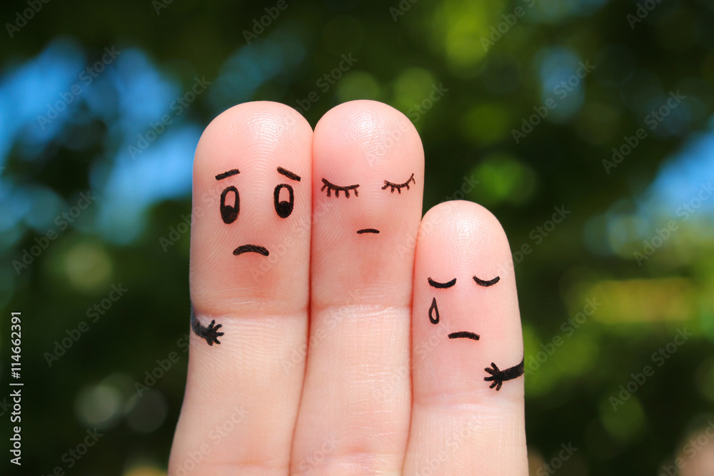 Finger art of displeased family. Concept of solution to the problems of family, support in difficult situations.