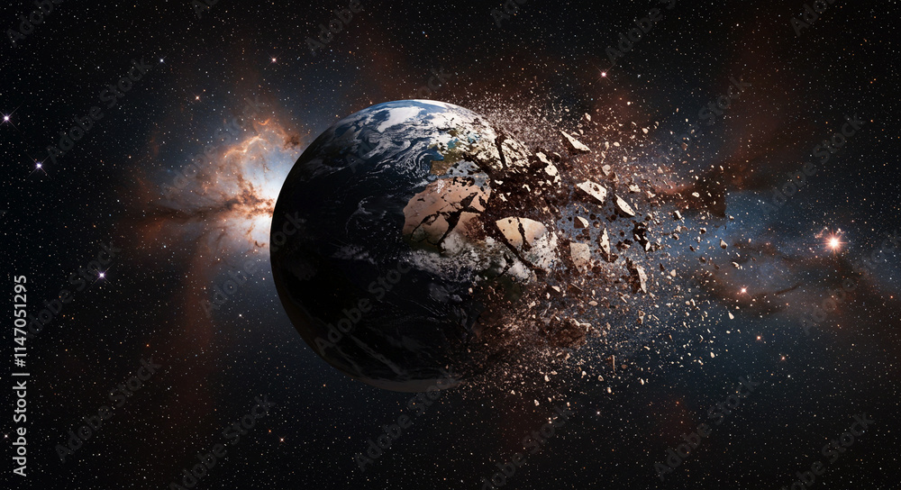 潮汐力によりバラバラに引き裂かれてブラックホールに落ちていく崩れた地球