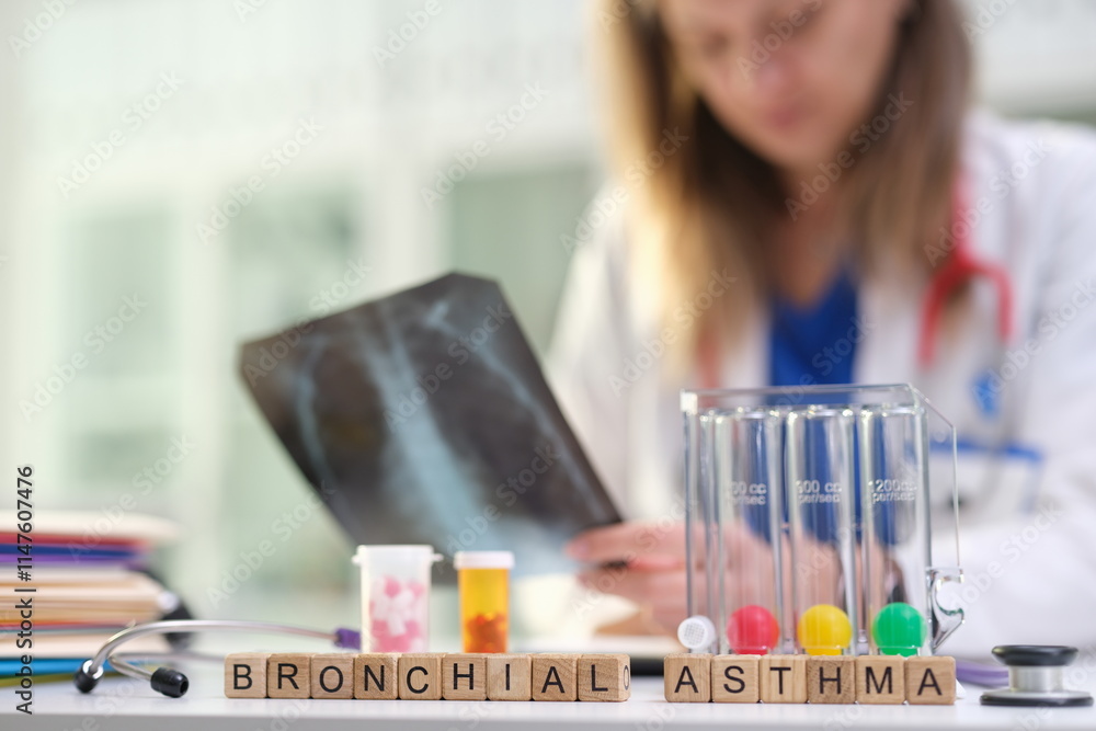 A skilled healthcare professional is meticulously analyzing bronchial asthma by using Xray and various lab tools