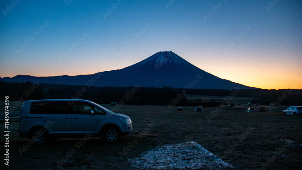 朝霧高原から 冬の富士山の絶景 静岡県富士宮市 日本