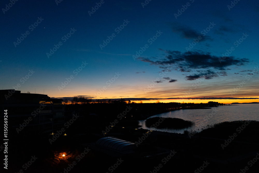 Sonnenuntergang am Balaton mit dramatischem Himmel und Silhouetten in Siófok, Ungarn