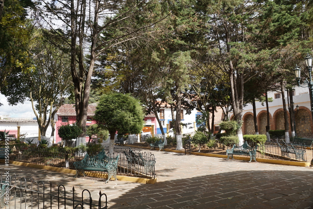 Park, trees,magic town, street, people, trees at san cristobal de las casas, chiapas