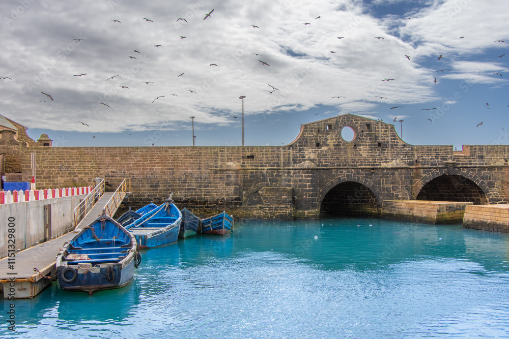 Small fishing boat in the port of the city of Essaouira in Morocco