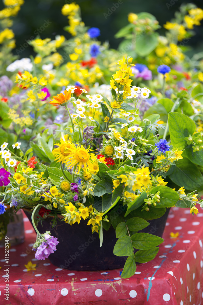 summerflowers in vase in summer garden