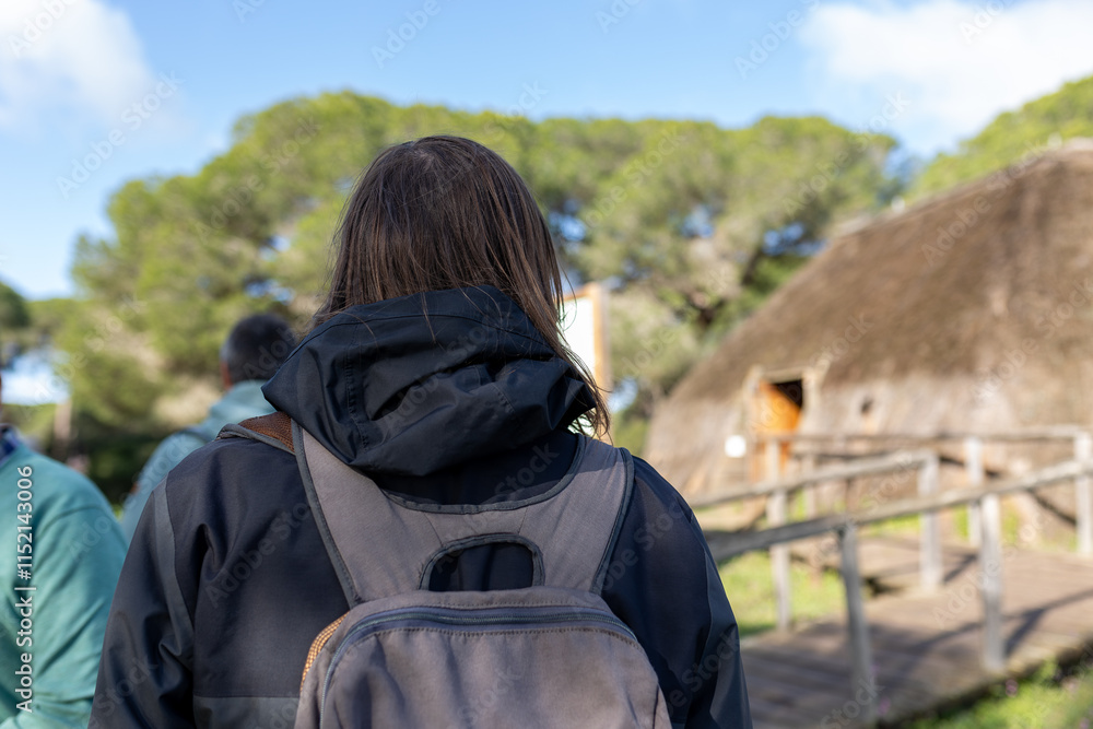 Tourist visiting the village of la plancha in the Doñana National Park, Huelva, Spain.