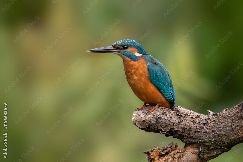 Kinfisher (Alcedo atthis) perched on branch Showing front and side of bird