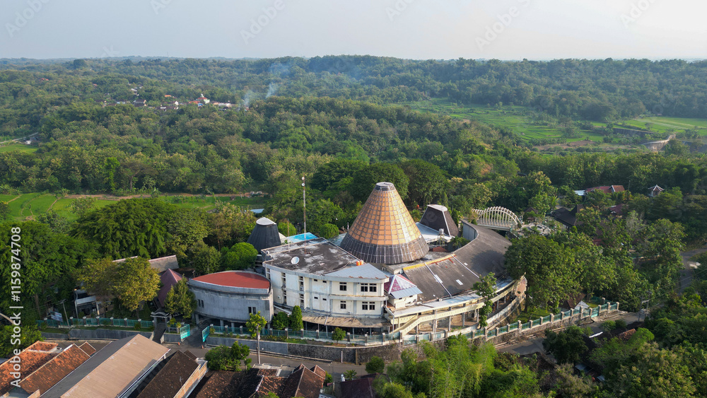 The Sangiran Museum features modern architecture with clean lines and earthy tones, harmonizing with its historical significance. Its design reflects a blend of culture and history, inviting explorati