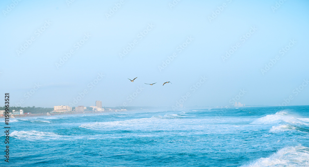 An intense swell reaches the beaches of Tampico. The waves of the Gulf of Mexico create a beautiful seascape.