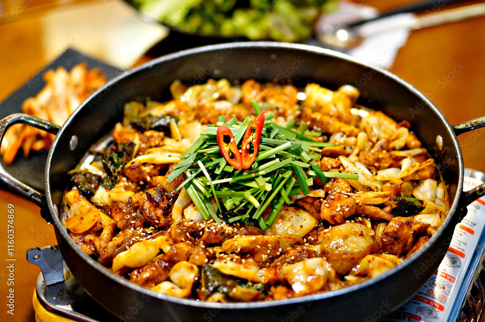 닭갈비를 먹기 위해 식탁 위에 올려놓은 모습