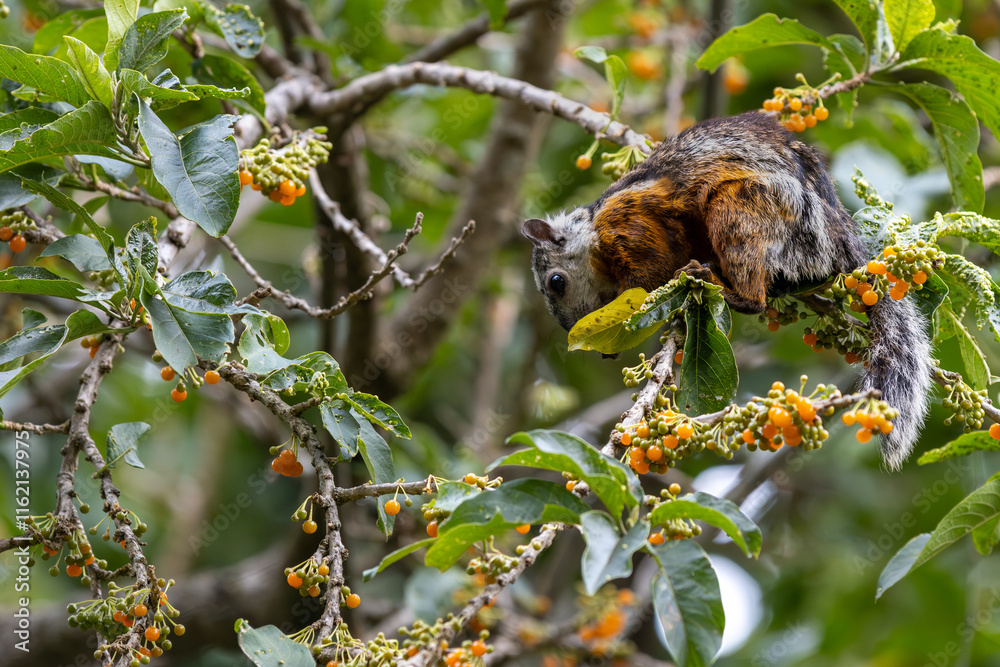 Central American squirrel (Sciurus variegatoides), feeding on fruits in Monteverde National Park, Costa Rica
