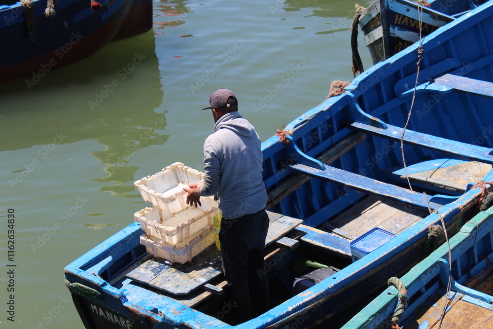 Pêcheur sur son bateau dans le port de Essaouira au Maroc