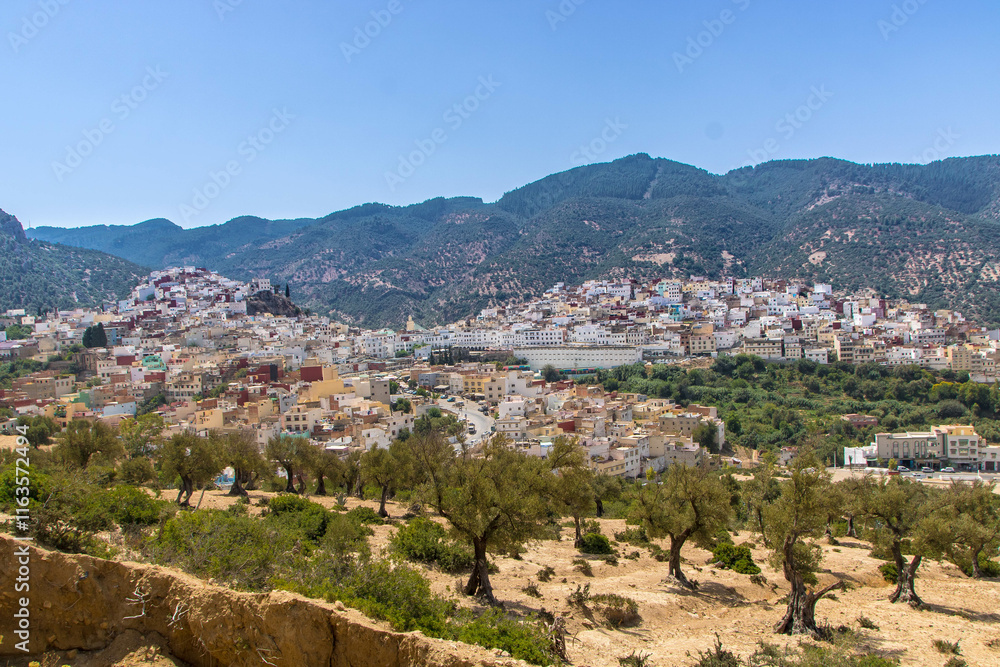 Moulay Idriss, Moulay Driss Zerhoun or simply Zerhoun, in the Fès-Meknès region of northern Morocco, spread over two hills at the base of Mount Zerhoun