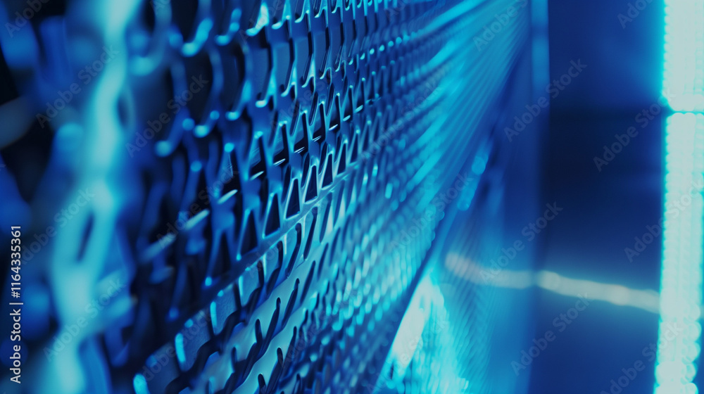 Advanced Cybersecurity Technology in Telecom Server Room with Blue Glow and Secure Environment.
