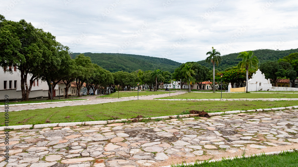 Colonial style square in Cidade de Goias in Brazil