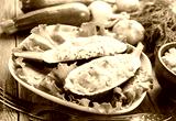 Zucchini stuffed with curd cheese