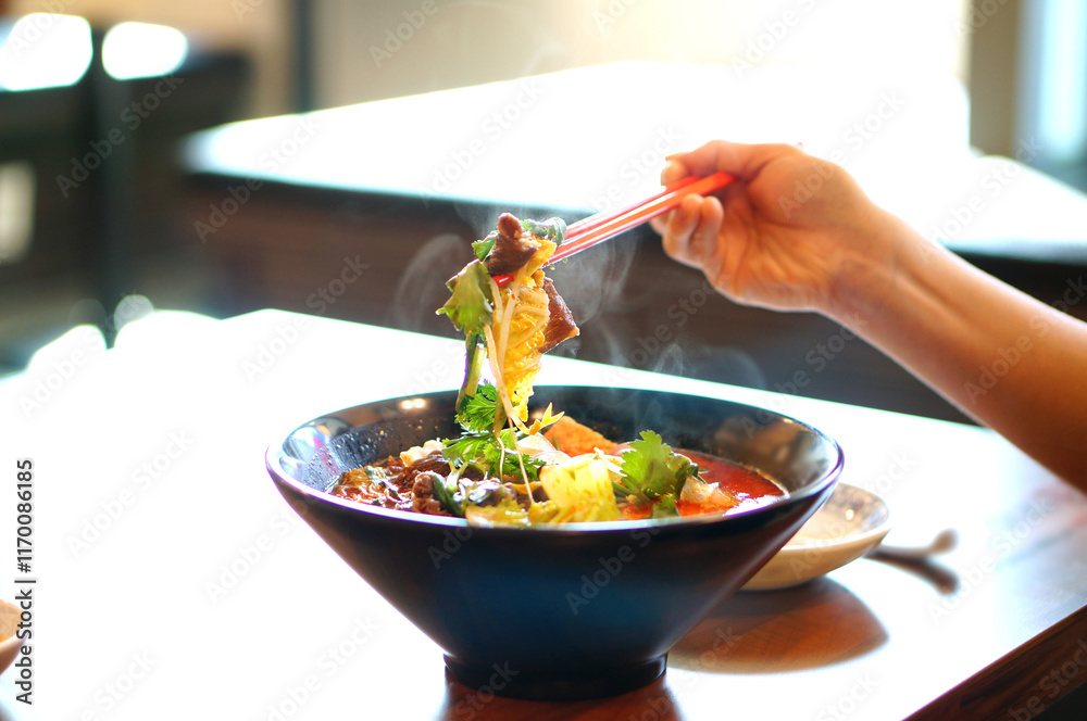 마라탕을 맛있게 먹고 있는 모습