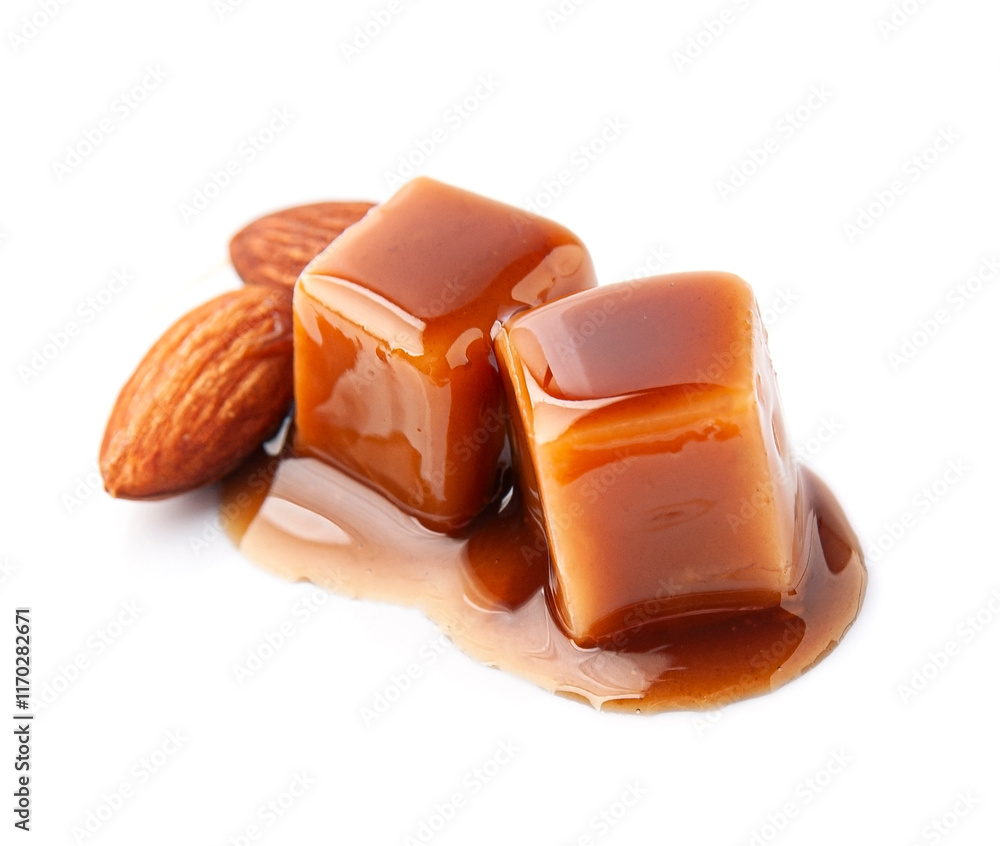 Caramel candy and almonds nut